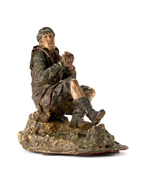Arte siciliana della fine del secolo XVII - inizio secolo XVIII. "Popolano" scultura in legno, tela e sughero dipinto in policromia (cm 15x15) (lievi difetti)