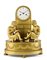 A gilded bronze mantel clock with "à la lecture" subject. White enamel dial with Roman numerals. "Breguet" clock hands. Weekly movement with hour and half hour chime on bell. Flush suspension France, circa 1820 (h. cm 35)(minor defects)