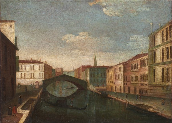 Scuola della fine del secolo XVIII - inizio XIX "Veduta di Venezia" olio su te