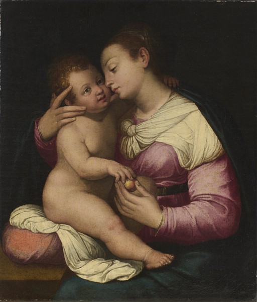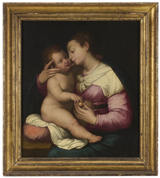 Scuola romana dell'inizio del secolo XVII "Madonna con Bambino" olio su tela (