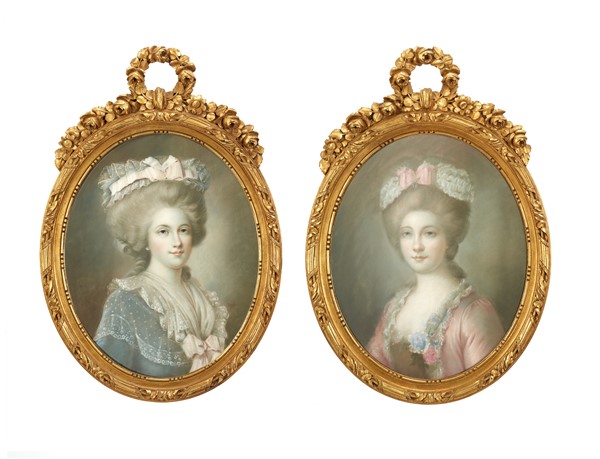 Lotto 933 | Scuola del secolo XIX "Ritratti di nobildonne" coppia di pastelli su carta (cm