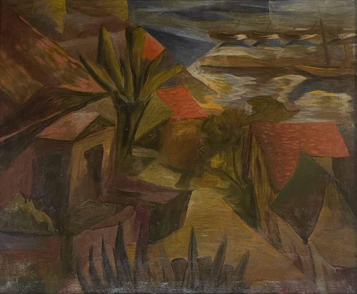CIACELLI ARTURO (1883 - 1966) TOITS ROUGE. 1918. olio su tela. Cm 60,00 x 50,00. firma