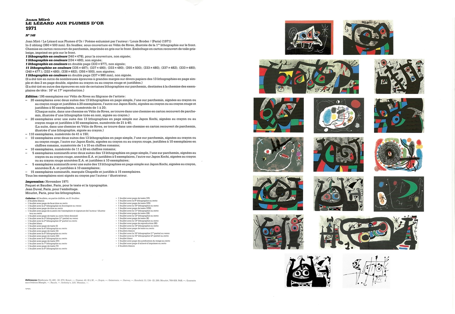 MIRÓ Joan, Le lézard aux plumes d'or, 1971, litografia a colori, cm 55x40,