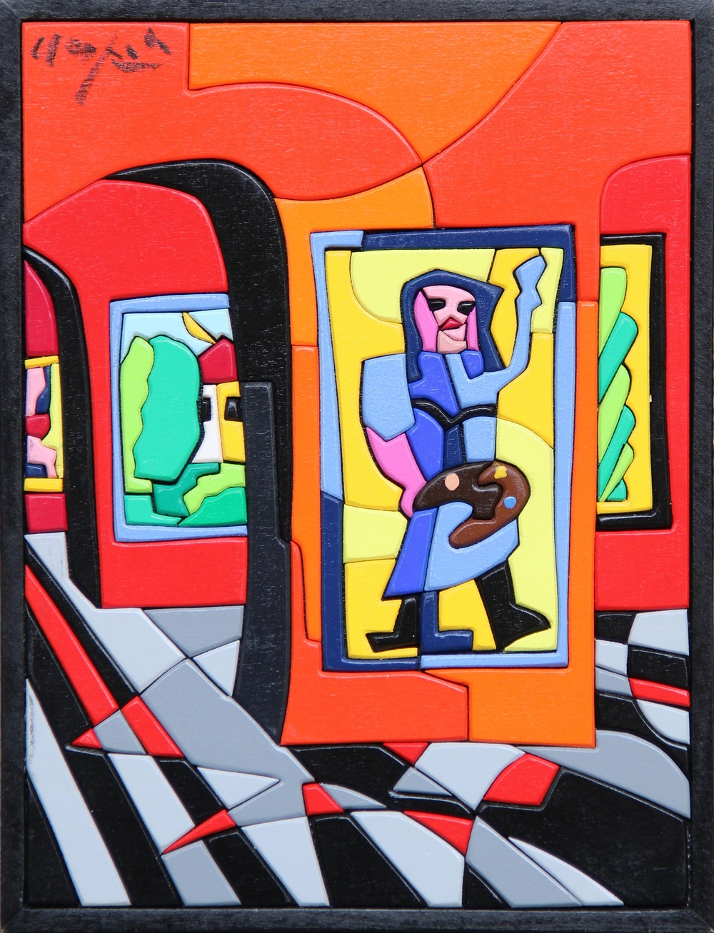 NESPOLO Ugo, Dentro, , acrilico su legno intarsiato, cm 24x18,