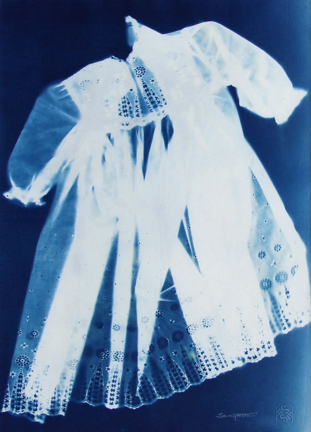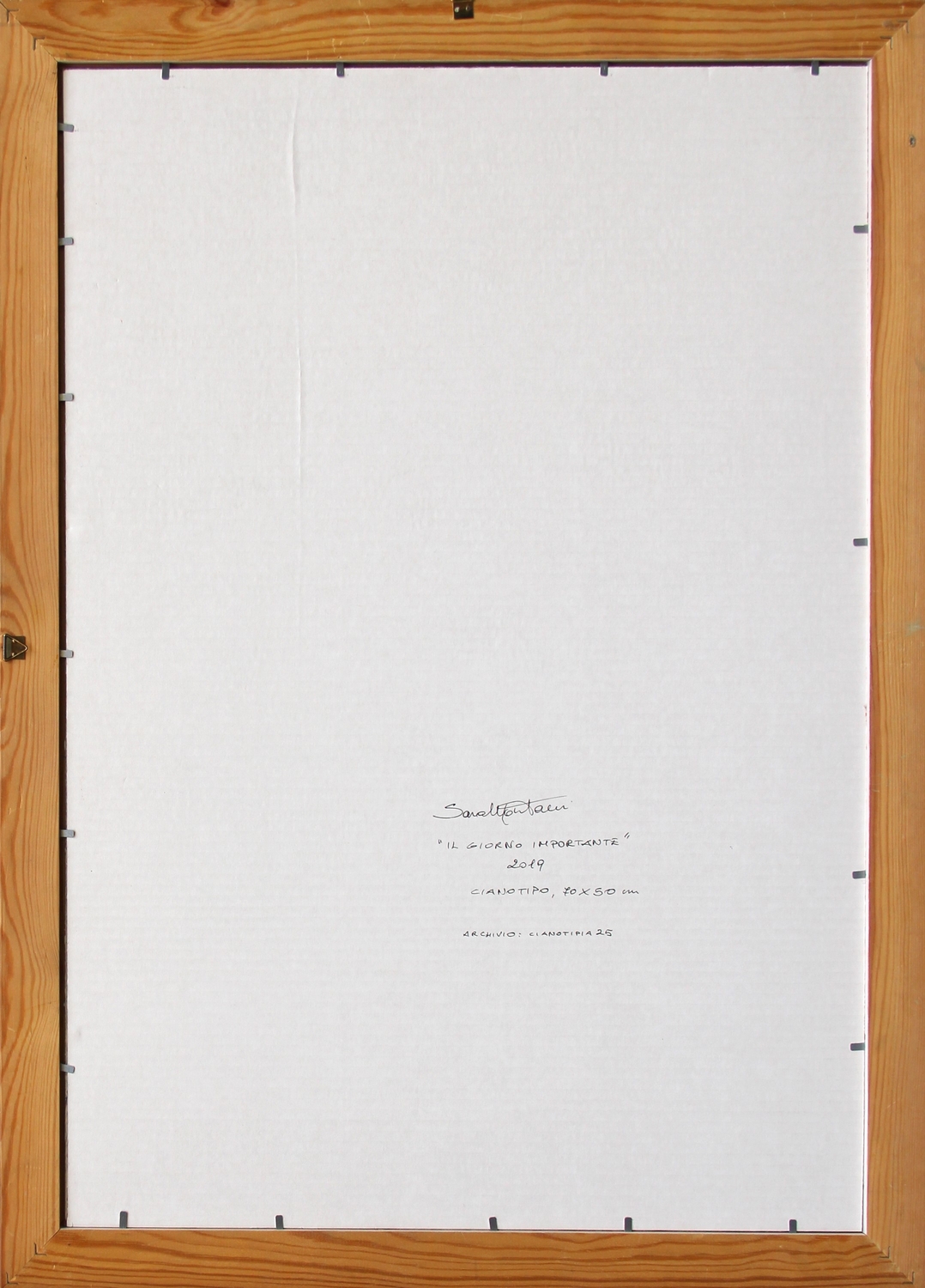 Firma, titolo, data, tecnica, misure "Sara Montani, 2019, cianotipo, 70x50" (al retro)