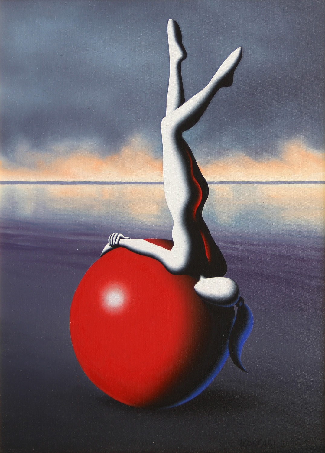 KOSTABI Mark, Beguiled by the sphere, 2000, olio su tela, cm 61x46,