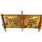 SPONDA DI CARRETTO in legno scolpito e dipinto in policromia raffigurante ruggero normanno riceve i prigionieri ruggero normanno combatte alle porte di palermo dipinta e firmata da Francesco Paolo cardinale fu Giuseppe arricchita da elementi decorativi in ferro battuto. sul retro raffigurazione del simbolo della trinacria XX secolo h cm 61 x 136