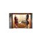 TEATRINO MECCANICO COMPOSTO DA 4 paladini con testa arti in legno abiti in stoffa e armatura in metallo sbalzato, sceneggiatura dipinta su legno raffigurante sullo sfondo paesaggio boschivo, sul fronte sipario con paladini e stemma nobiliare maestranze siciliane prima metà del XX secolo h cm 160 x 213 x 115