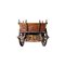 RARO ED IMPORTANTE CARRETTO SICILIANO in legno di noce interamente scolpito ad alto rilievo , parte interna interamente dipinta in policromia, sponde raffiguranti Duca della Motta e Beati Paoli scena "Noi conosciamo i tuoi delitti", Garibaldi e i suoi picciotti entra a Palermo, duello rusticano, duello la giara, portellone posteriore raffigurante i vespri siciliani, la fuga di Giordano e Orette, nel sottofondo castello di Caccamo. Ai lati veduta sulla cappella Palatina ed i templi di Agrigento, sulla chiave raffigurante la morte di F.Ferrucci. Ruote interamente scolpite raffiguranti personggi e flora. Aste raffiguranti scene di battaglia cornucopie e stemma nobiliare, arricchito da decorazioni in ferro battuto, firmato dal maestro scultore Sparacio..... h cm 160 x 180 x 370