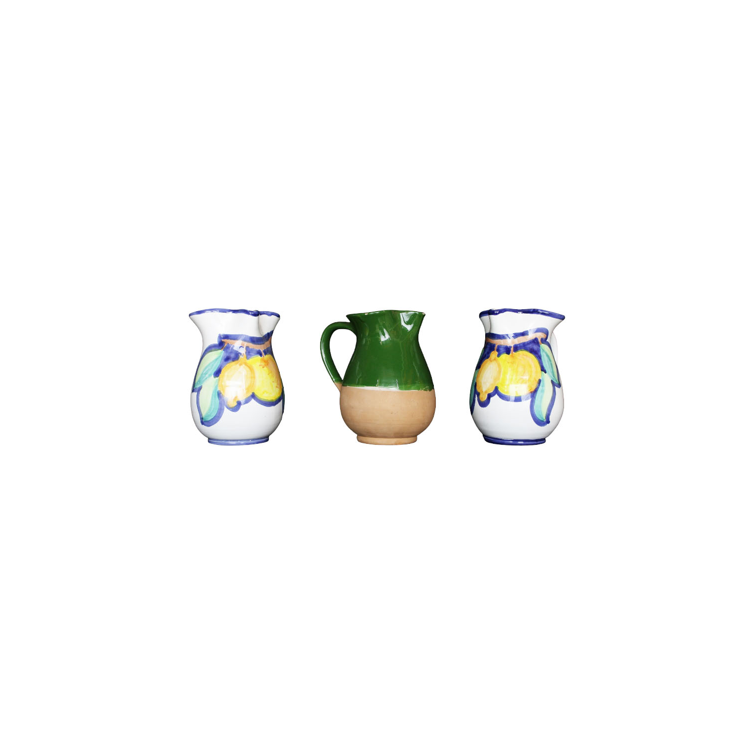TRE BROCCHE in maiolica dipinte manifattura siciliana XX secolo misure varie