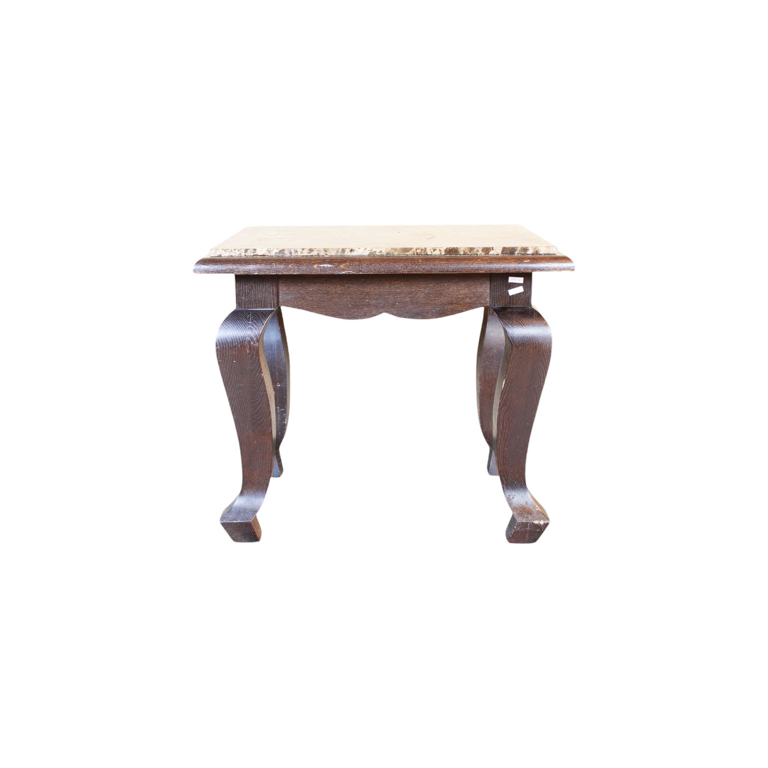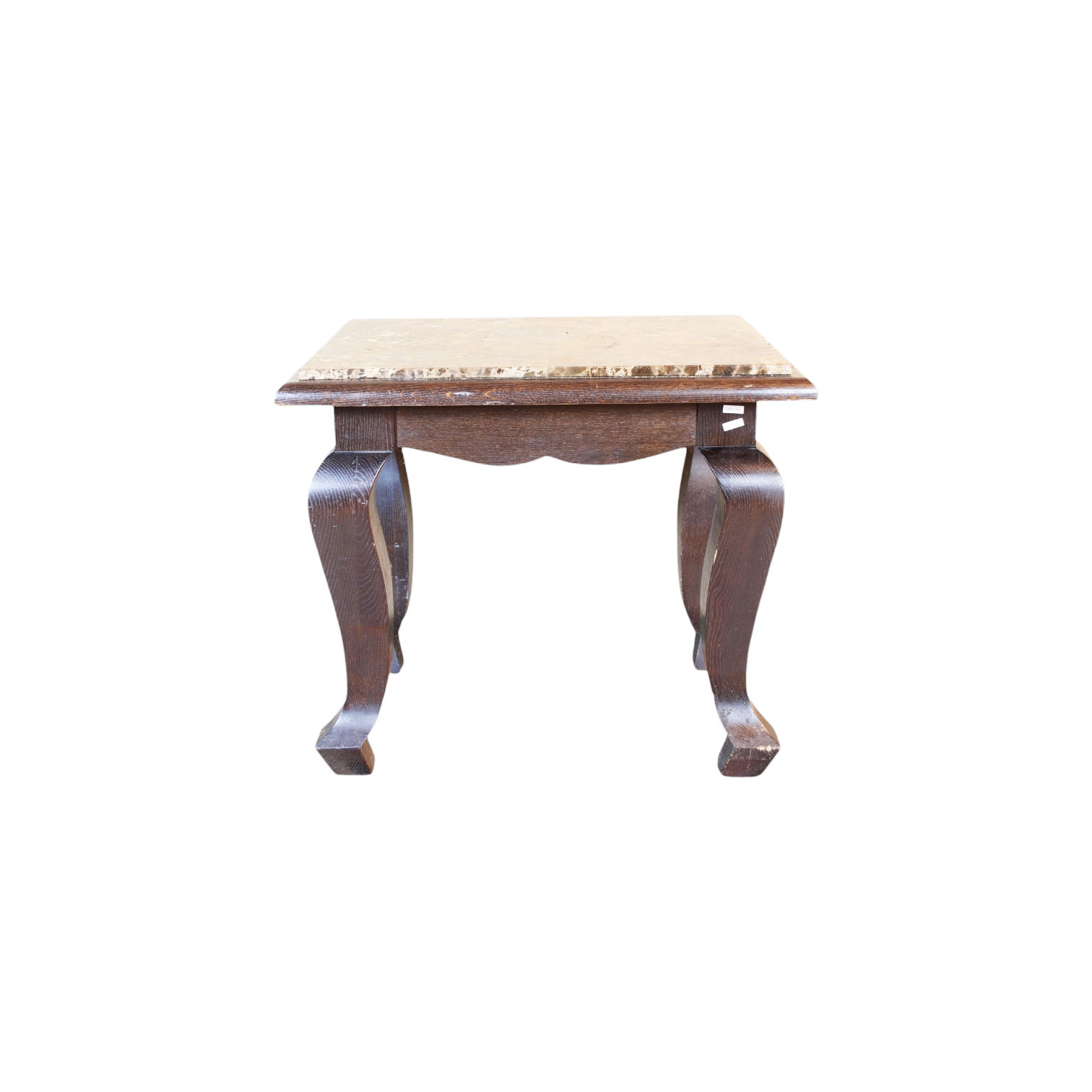 TAVOLO DI GUSTO ETNICO in legno di castagno con piano in marmo maestranze asiatiche XX secolo h cm 82 x 96 x 70