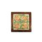 TAVOLO in legno di castagno di forma quadrata con base laccata e piano composto da 9 mattonelle in ceramica dipinta in policromia raffigurante melograni , manifattura Fabio Boria Caltagirone XX secolo h cm 80 x 78 x 79
