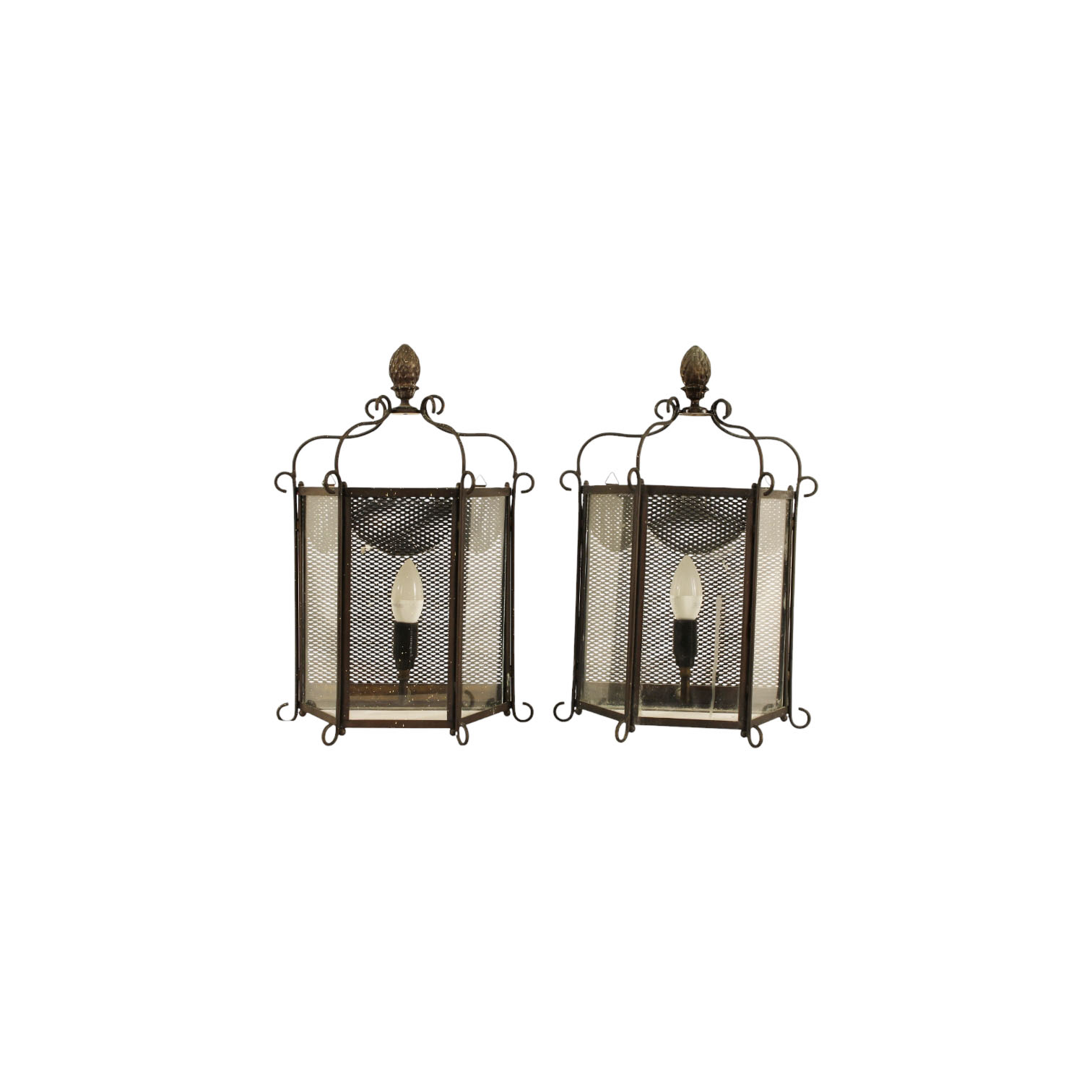 N. 2 APPLIQUES A LANTERNA in ferro battuto ad una luce XX secolo h cm 44 x 30 x 11