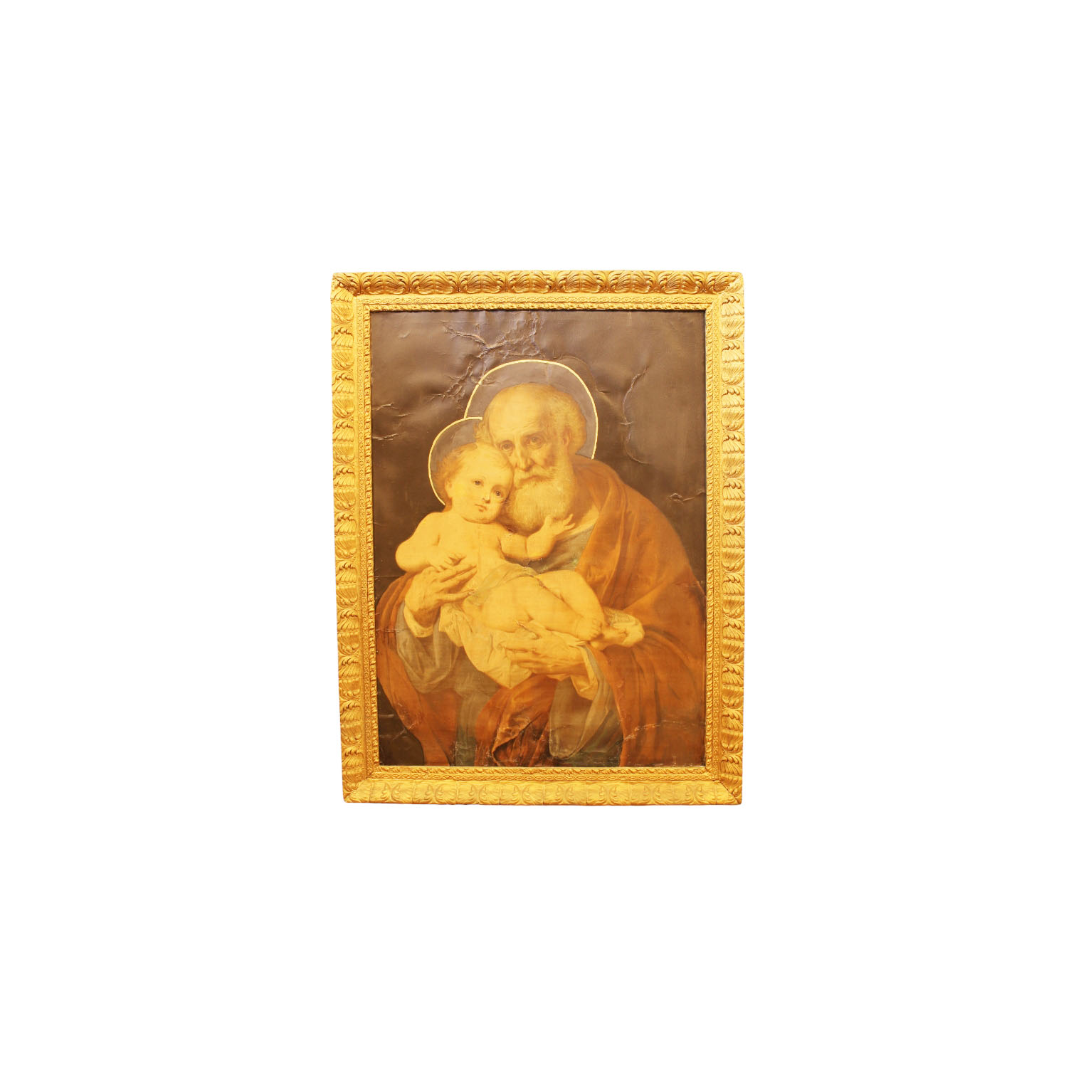 STAMPA CLASSICA raffigurante San Giuseppe con bambin Gesù dentro cornice dorata h cm 93 x 68 / cornice h cm 109 x 84