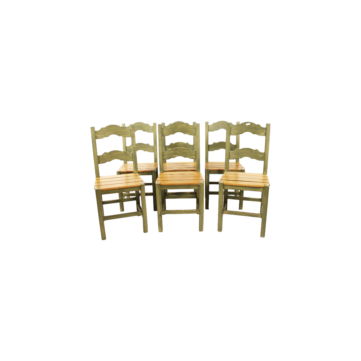 LOTTO DI 6 SEDIE in legno di noce e laccate verde di gusto provenzale manifattura italiana XX secolo h cm 90 x 47