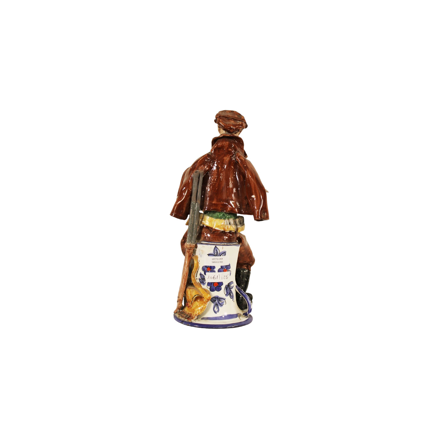 GRUPPO SCULTOREO in maiolica policroma raffigurante cacciatore sbeccature e mancanze maestranze siciliane h cm 32 x 16