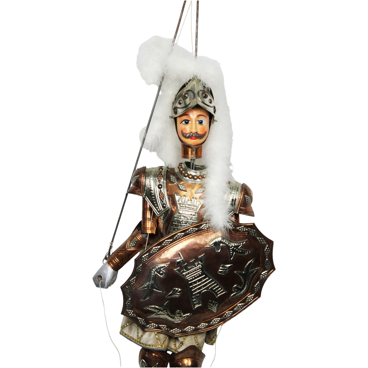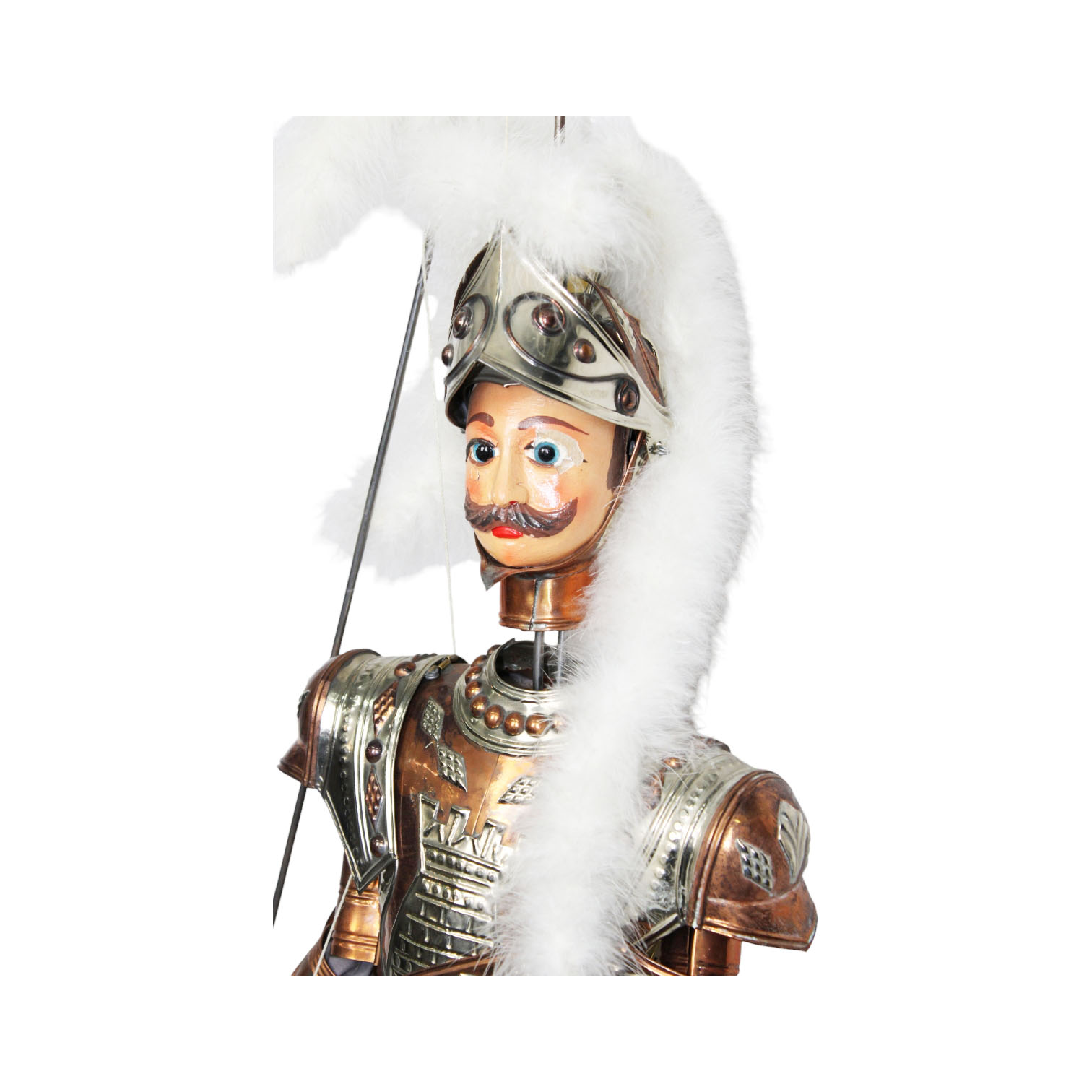 BRADAMANTE, PUPO SICILIANO in metallo tessuto e faggio,creazione a mano del maestro artigiano S. Bumbello. difetto occhio sinistro. certificato di garanzia fine anni 70 h cm 97 x 40 Più ASTICINA CON GANCIO 25/30cm