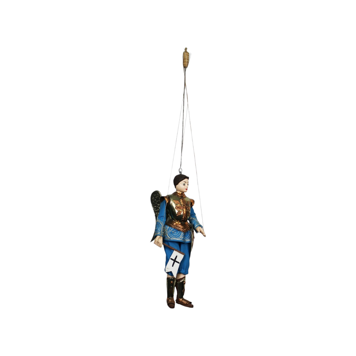 PUPO PICCOLO CON ALI in faggio metallo e tessuto. creazione del maestro artigiano S. Bumbello anni 80 h cm 48 x 13 Più ASTICINA CON GANCIO 25/30cm
