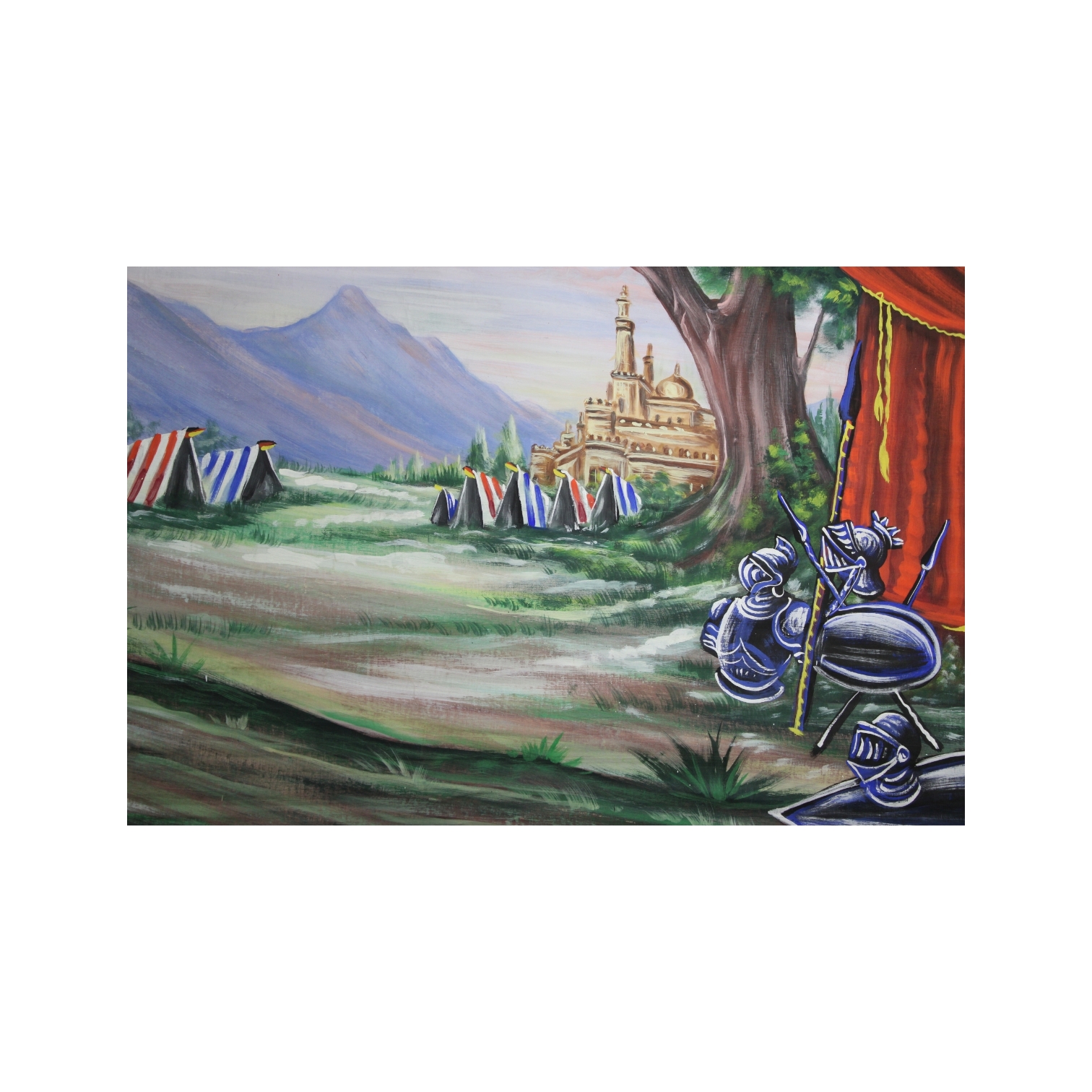 PANNELLO SCENOGRAFICO raffigurante tenda interno opera del maestro Salerno anni 70 h cm 116 x 197