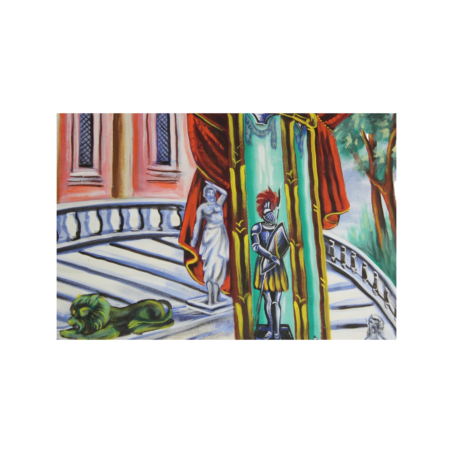 PANNELLO SCENOGRAFICO raffigurante montalbano scale opera del maestro Salerno anni 70 h cm 115 x 204