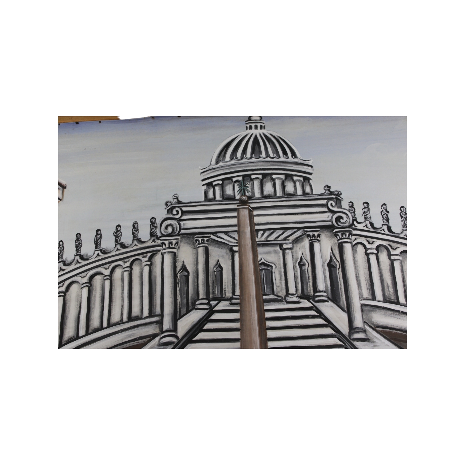 PANNELLO SCENOGRAFICO raffigurante piazza di Roma opera del maestro Salerno anni 70 h cm 115 x 197