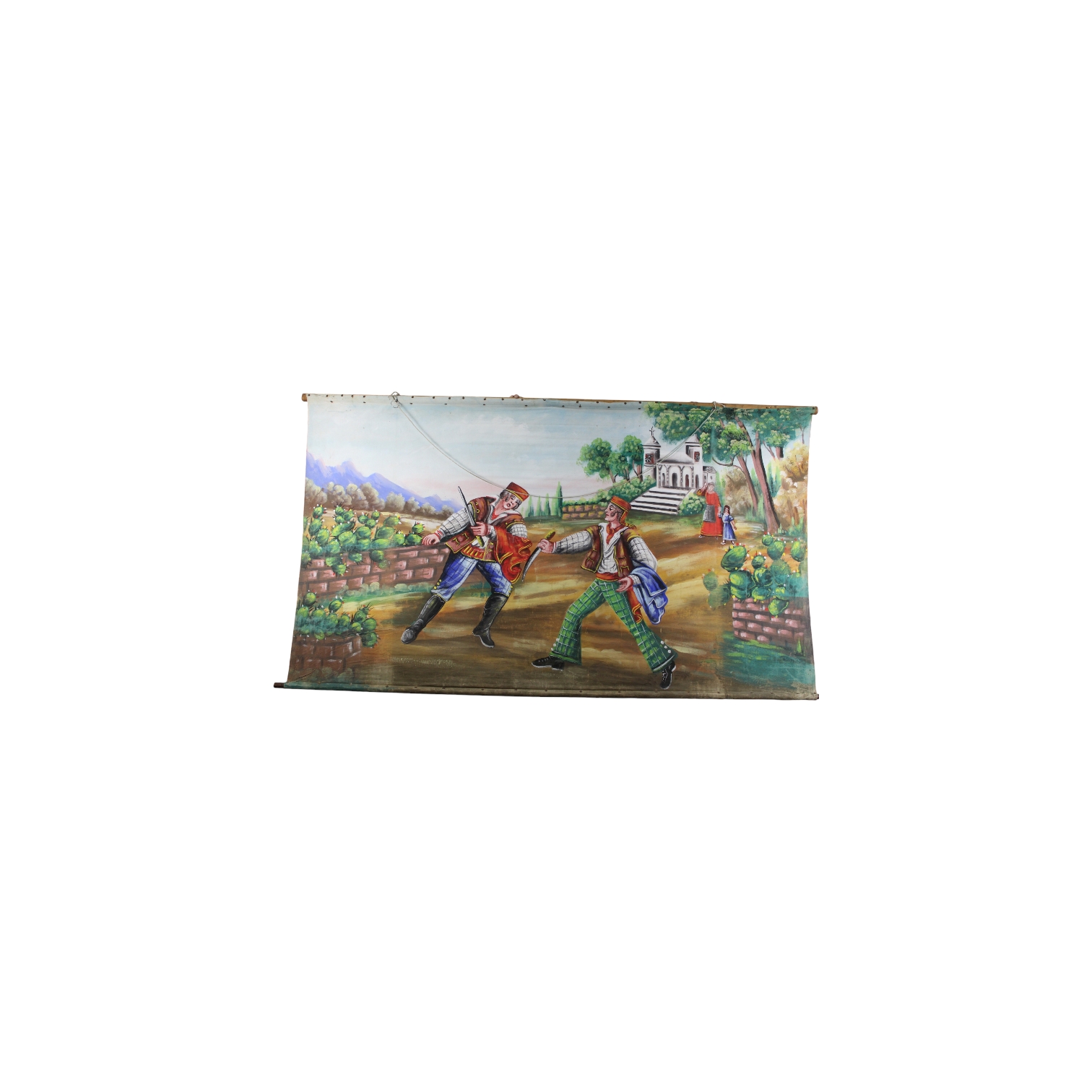 SIPARIO raffigurante duellanti opera del maestro Salerno anni 50 h cm 133 x 235