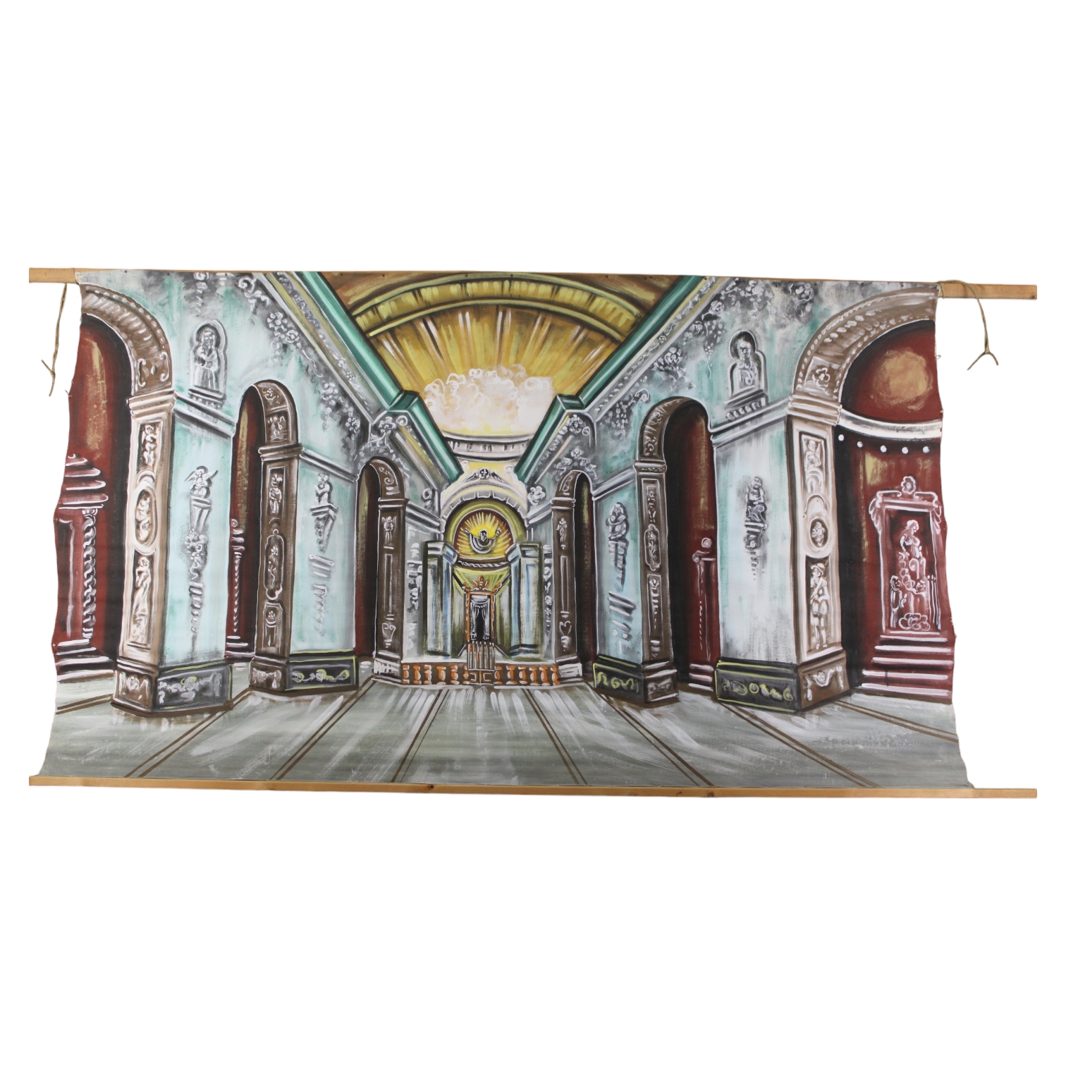 PANNELLO SCENOGRAFICO raffigurante chiesa di Roma opera del maestro Salerno anni 70 h cm 112 x 192