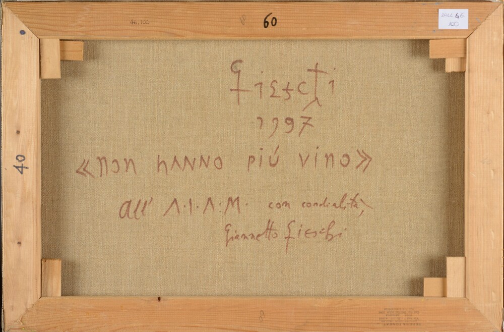 Lotto 61 | Giannetto Fieschi - Non hanno più vino 1997 olio su tela 40 x 80 cm firmato,...