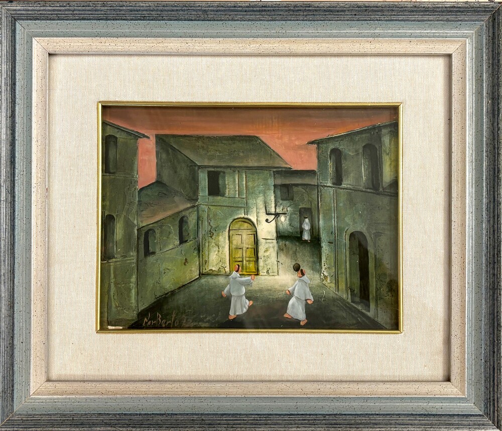 Norberto Proietti - Pretini giocano a pallone all'imbrunire 1972 olio su...