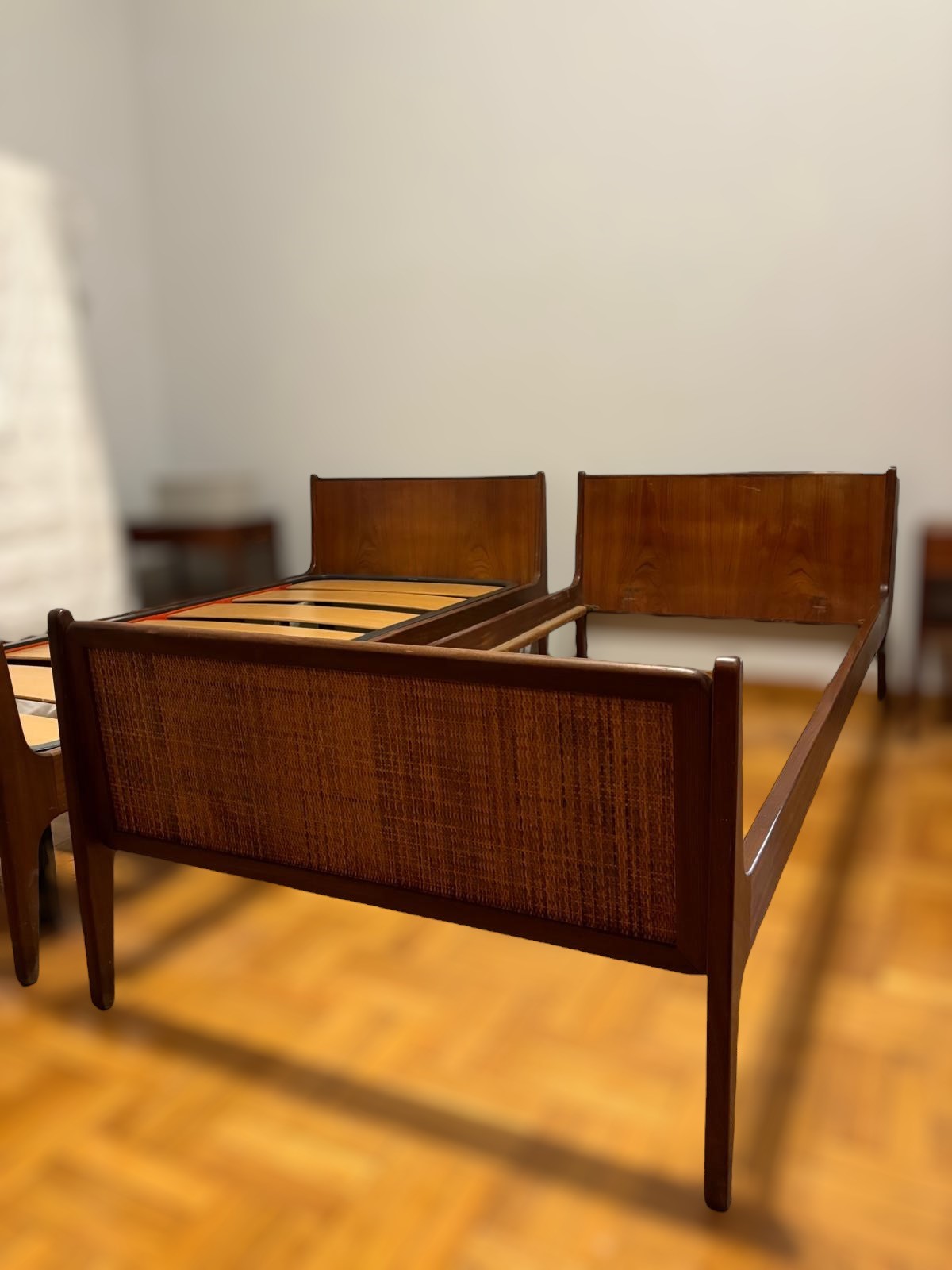 Folke Ohlosson - Coppia di letti singoli 1960 legno e rattan 90 x 200 cm...