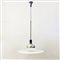 lampada a sospensione. Paralume in metallo cromato, acciaio verniciato, plastica, metacrilato sospeso con cavi in acciaio. Etichetta con marchio di produzione.