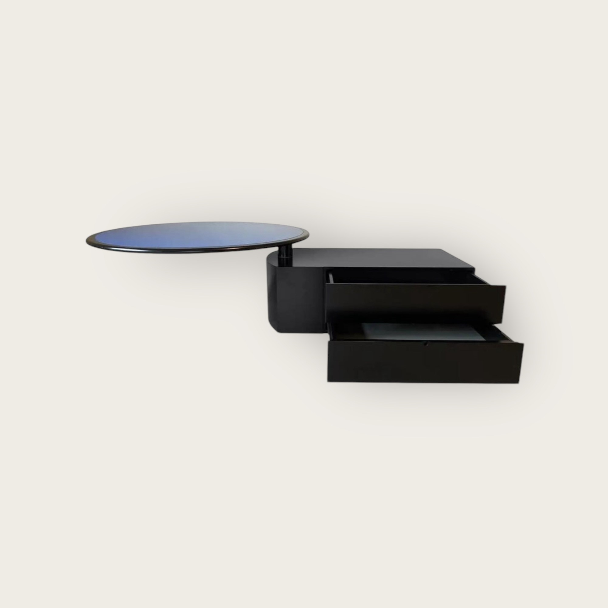 Prodotto per "Artflex Italia". Color nero con ripiano blu.