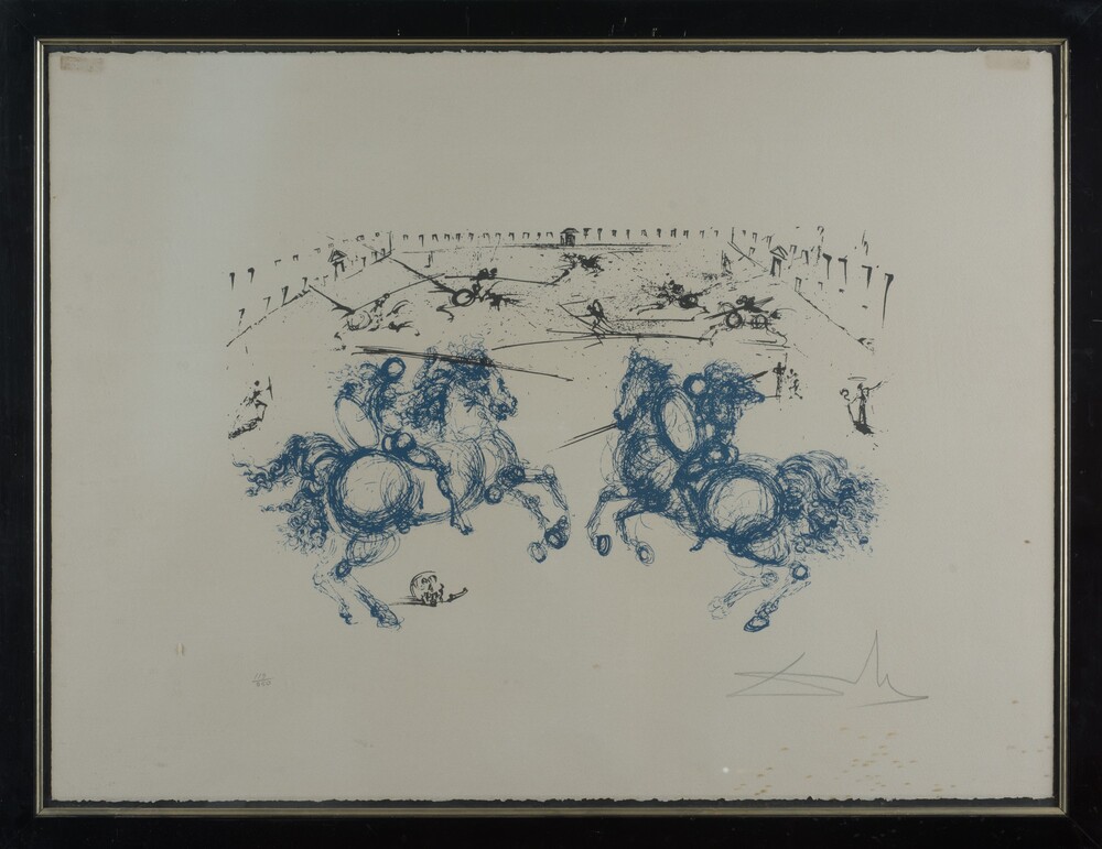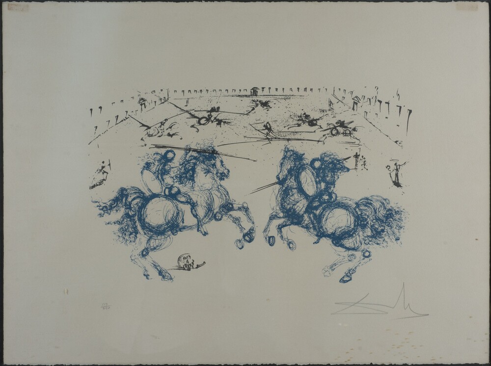 Salvador Dalì - Combat de cavaliers 1971 litografia a colori su carta giapponese 56 x76 cm