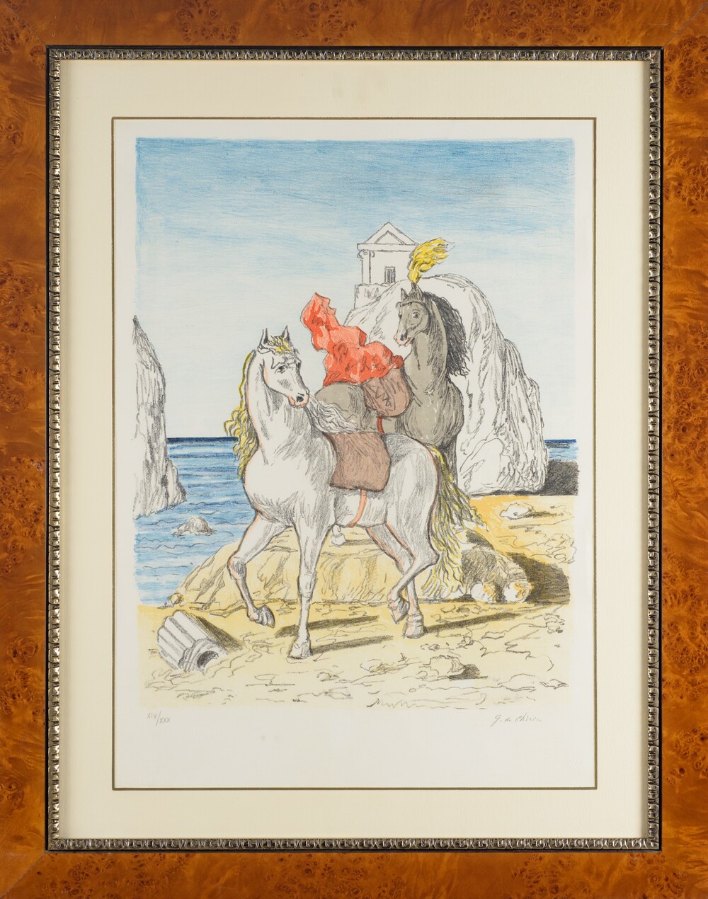 Giorgio De Chirico - Cavalli su una spiaggia antica litografia 68 x 49 cm