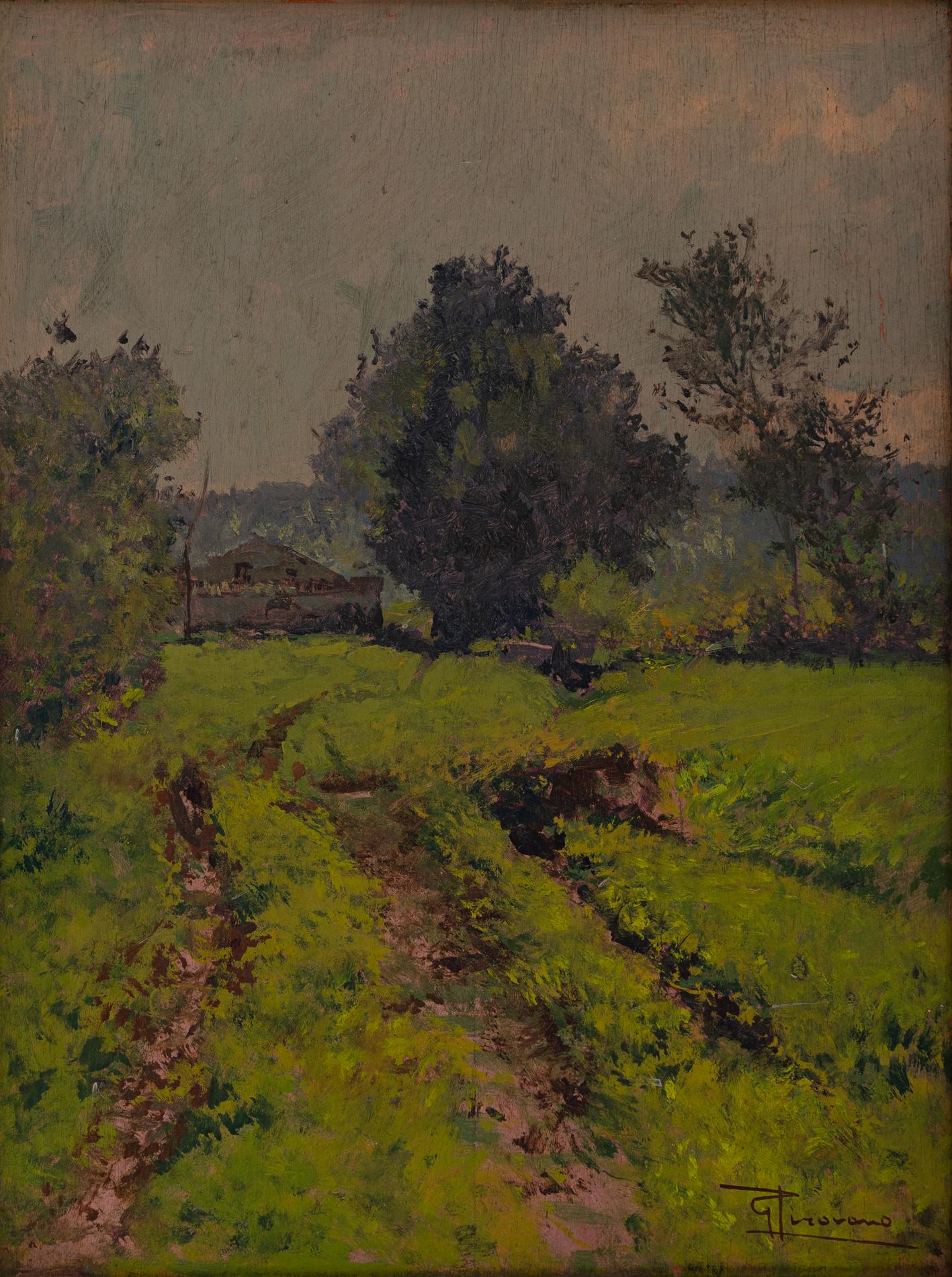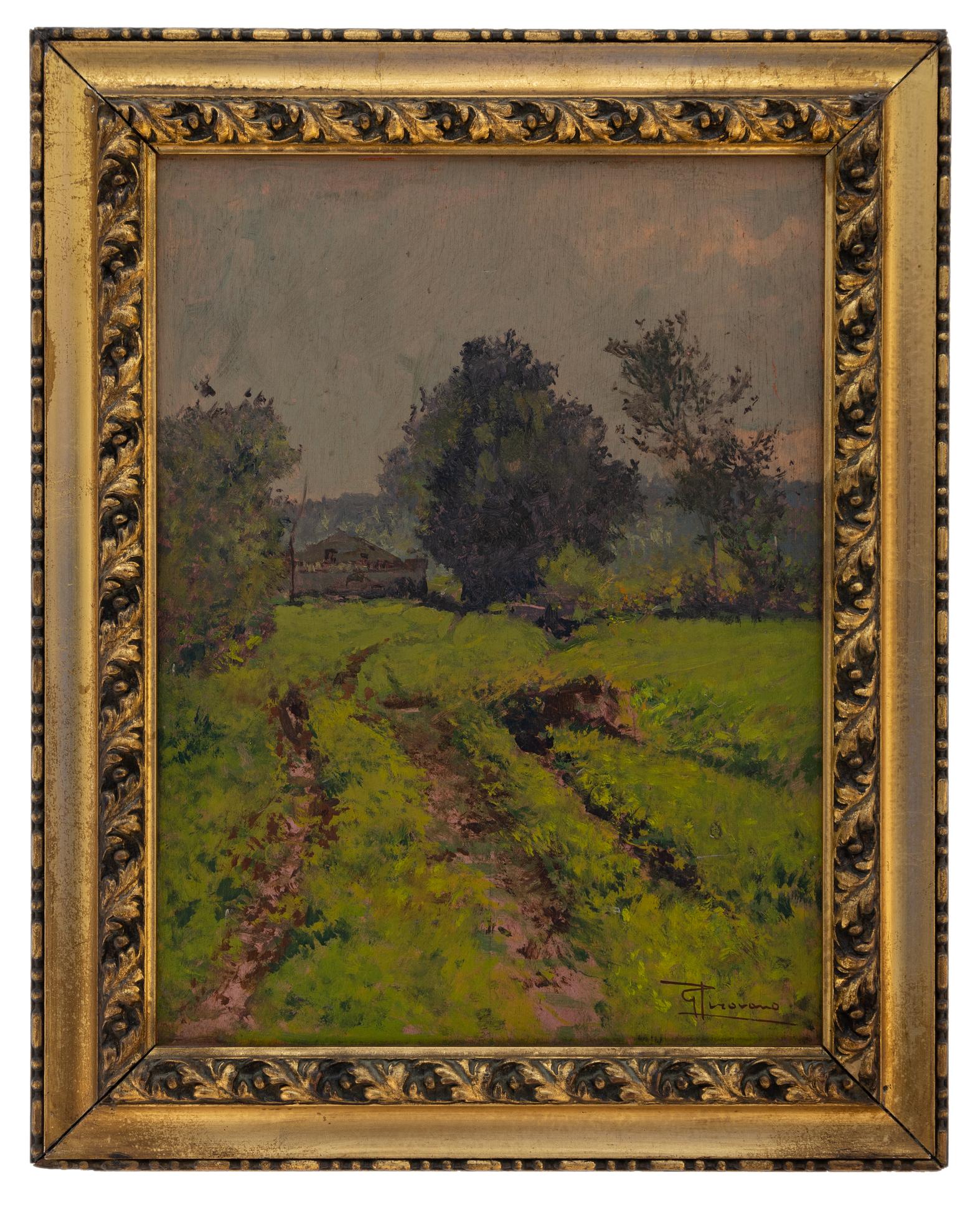 Giovanni Pirovano - Strada di campagna - Renate 1880-Milano 1959 - Olio su tavola cm 40x30
