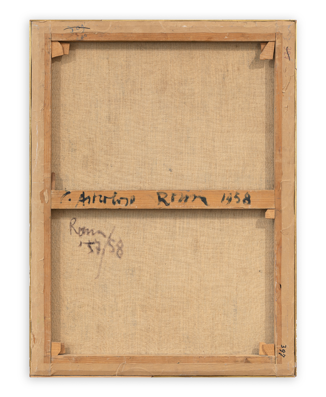 Firma, datazione e località (Roma) al retro, sulla tela e sul telaio