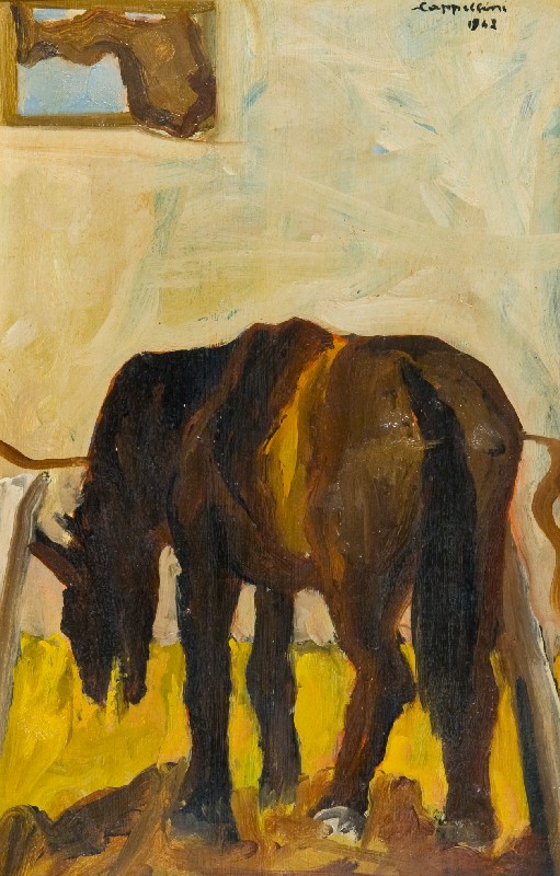 Alfiero Cappellini (Pistoia 1905 - 1969) CAVALLO NELLA STALLA, 1942 Olio su tavola, cm. 37x25 Firma e data in alto a destra.