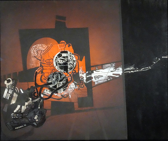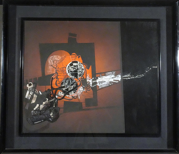 Massini Claudio (Napoli 1955) Il burocrate tecnica mista tela, cm 50x60 firmato e datato in basso a sinistra: Massini 74