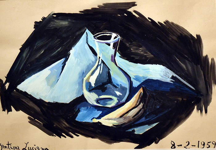 Bratina Luciana (XX secolo) La bottiglia tecnica mista su carta, cm 22x32 firmato in basso a sinistra: Bratina Luciana datato in basso a destra: 8-2-1959