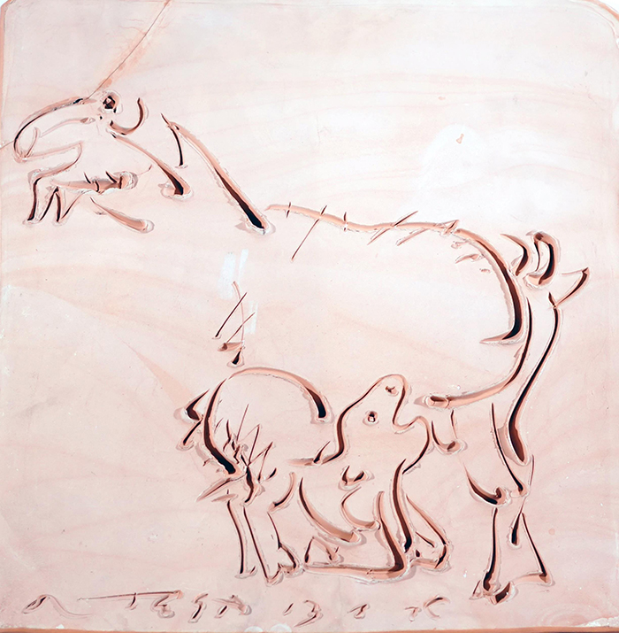 Ortega Josè (Arroba de los Montes 1921 - Parigi 1990) Animali. Mattonella in terracotta, cm 38x37 incisa in basso: Ortega