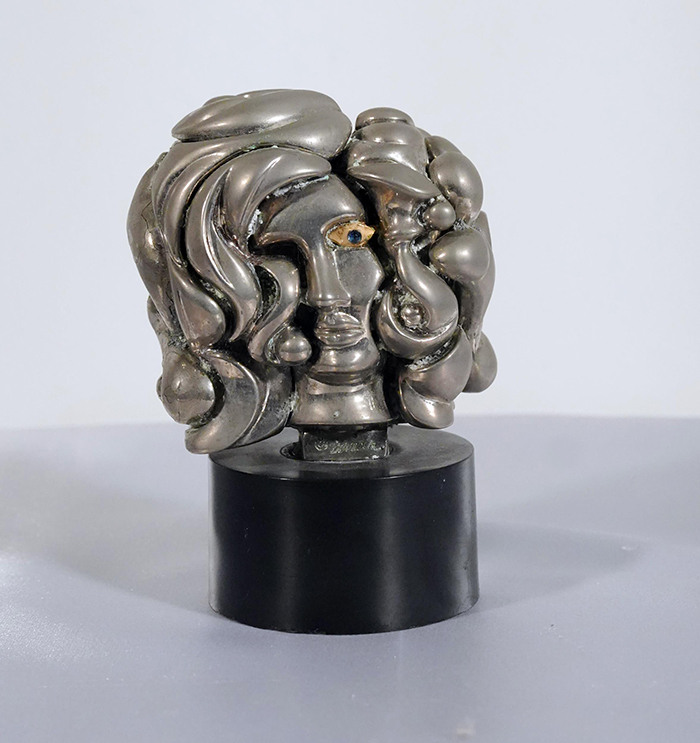Berrocal Miguel (Villanueva de Algaidas, Spagna 1933 - Malaga, Spagna 2000) Portrait de Michelle metallo h. cm 9 firmato Berrocal