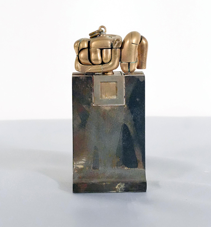 Berrocal Miguel (Villanueva de Algaidas, Spagna 1933 - Malaga, Spagna 2000) Micro Maria scultura in nichel, h cm 8