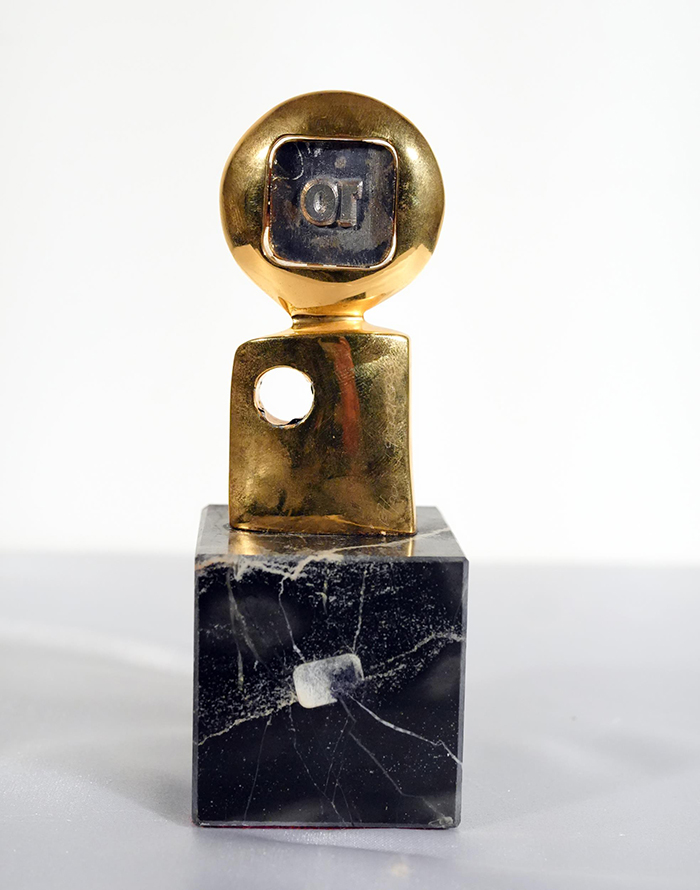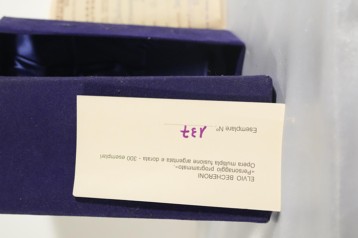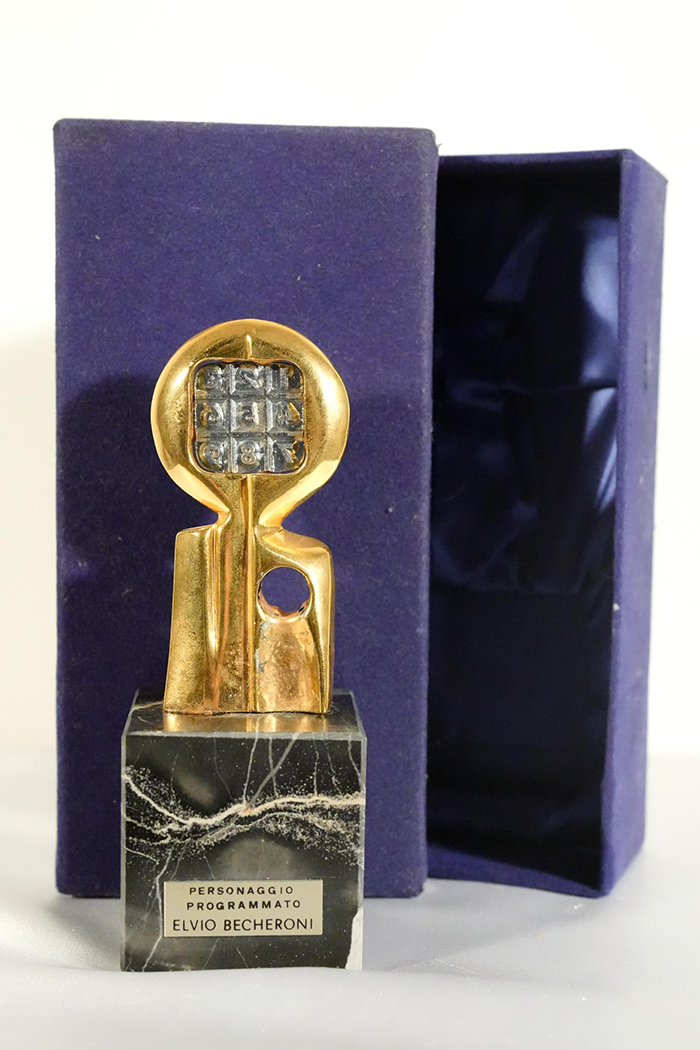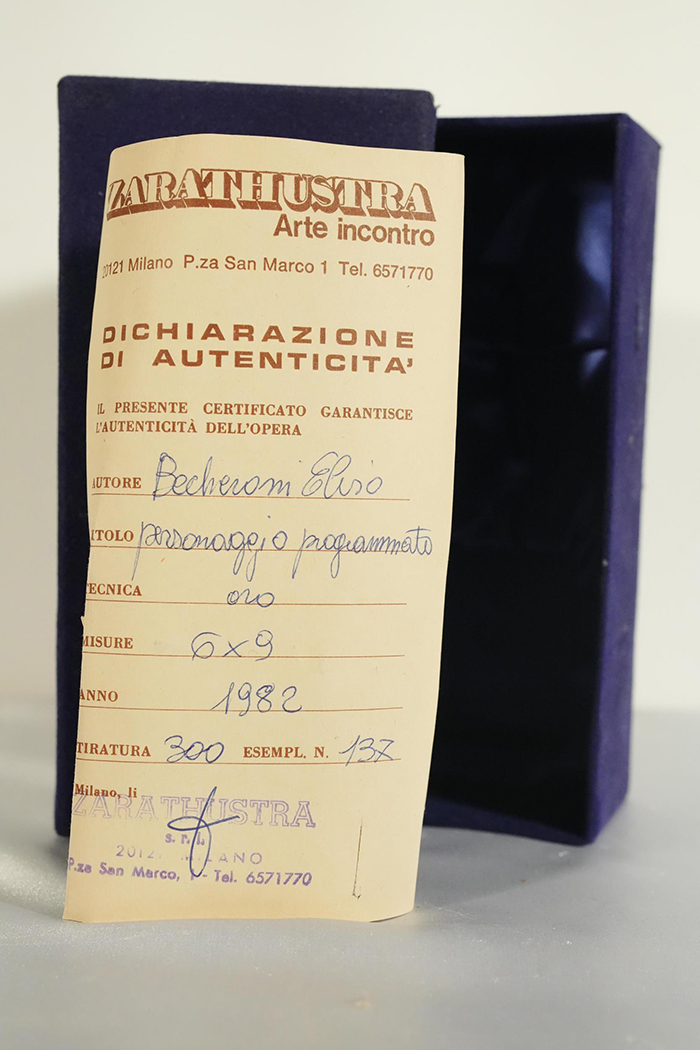 Becheroni Elvio ( Firenze 1934 - 2000) Personaggio che conta opera multipla fusione argentata e dorata cm 6x9 137/300 anno 1982 dichiarazione di autenticità Arte e incontro Zarathustra,Milano