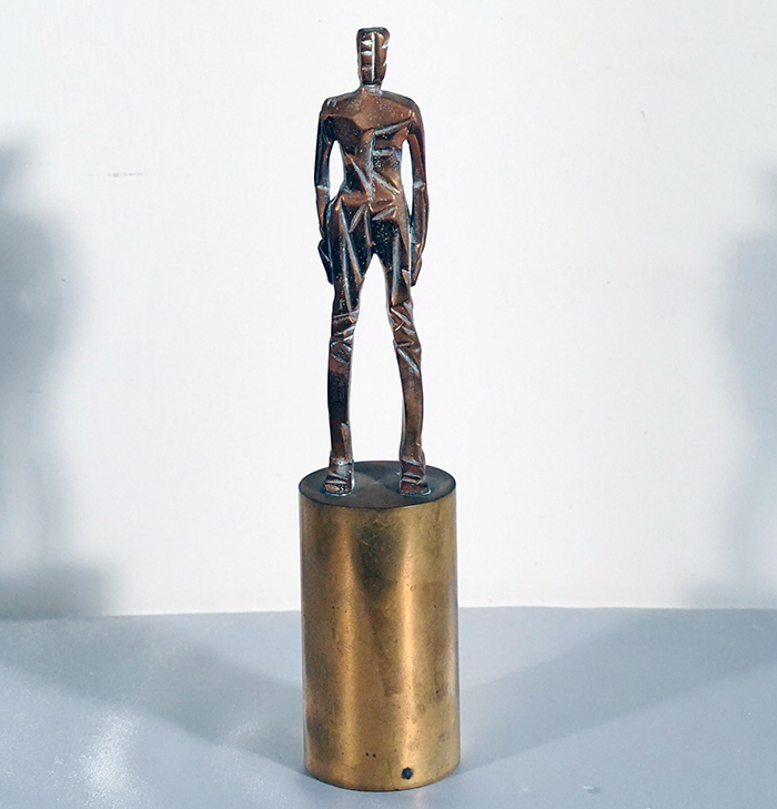 Rossello Mario (Savona 1927 - 2000) Uomo scultura in bronzo h cm 21 con base