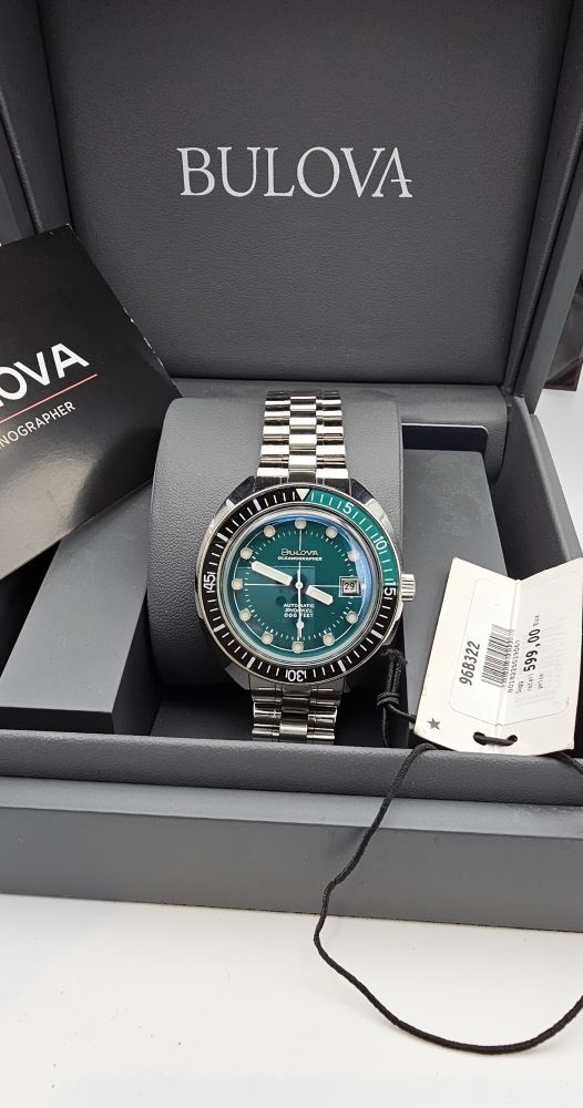 Bulova Oceanographer, orologio da polso da uomo in acciaio. Sub 200 mt. Diam. 44 mm. Ref. 96b322. Corredato da scatola e garanzia.