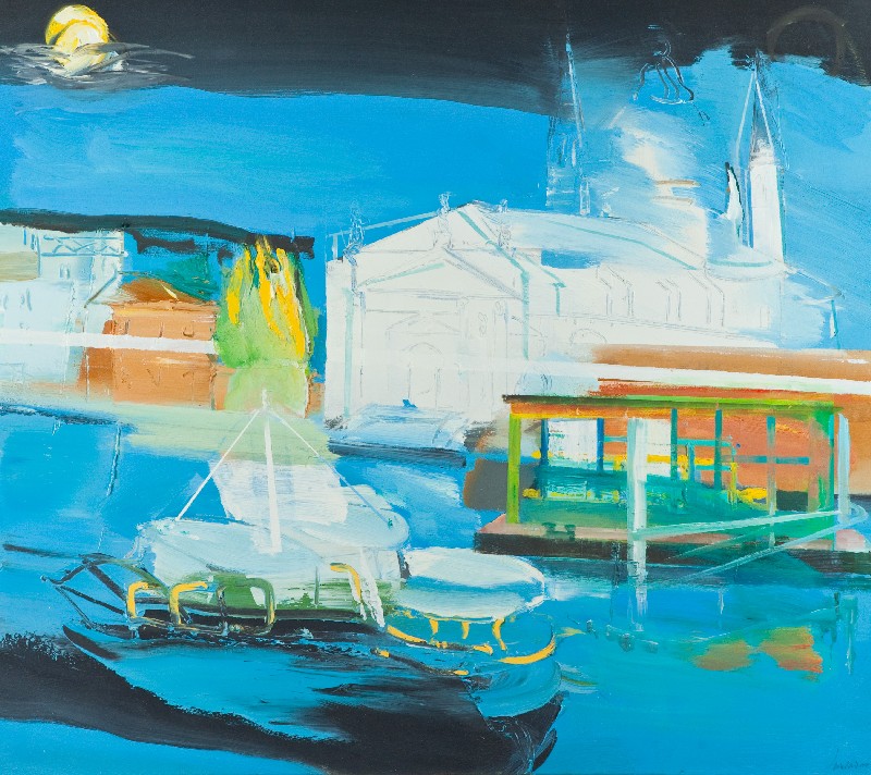 Cinzio Veneziani (Chioggia (Ve) 1940) NOTTURNO Olio su tela, cm. 80x90 Firmato in basso a destra. Sul verso: firma e titolo. Autentica dell'Artista su foto.