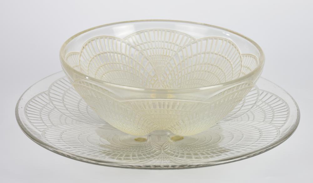 Lalique Renè "COCQUILLES" COPPA E PIATTO, modelli creati nel 1924 vetro...