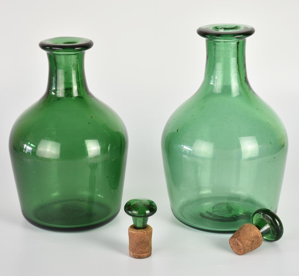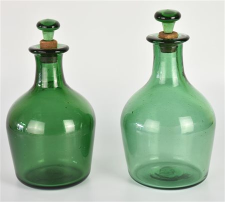 Lotto 52 | COPPIA DI BOTTIGLIONI IN VETRO VERDE, Italia fine XIX secolo vetro soffiato e...