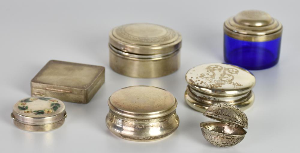 LOTTO DI SETTE SCATOLINE IN ARGENTO costituito da: Piccola scatolina a forma...