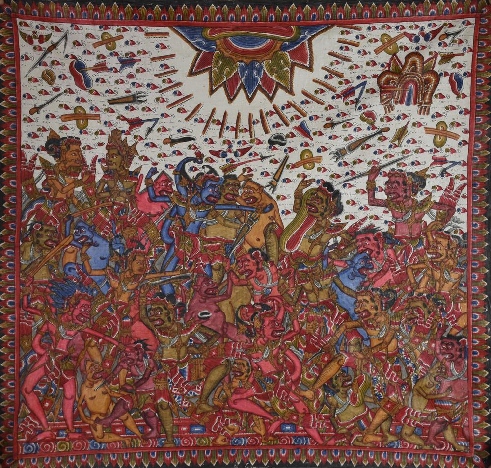 GRUPPO DI TRE TESSUTi BATIK CON DIVINITA', Bali, Indonesia XIX secolo